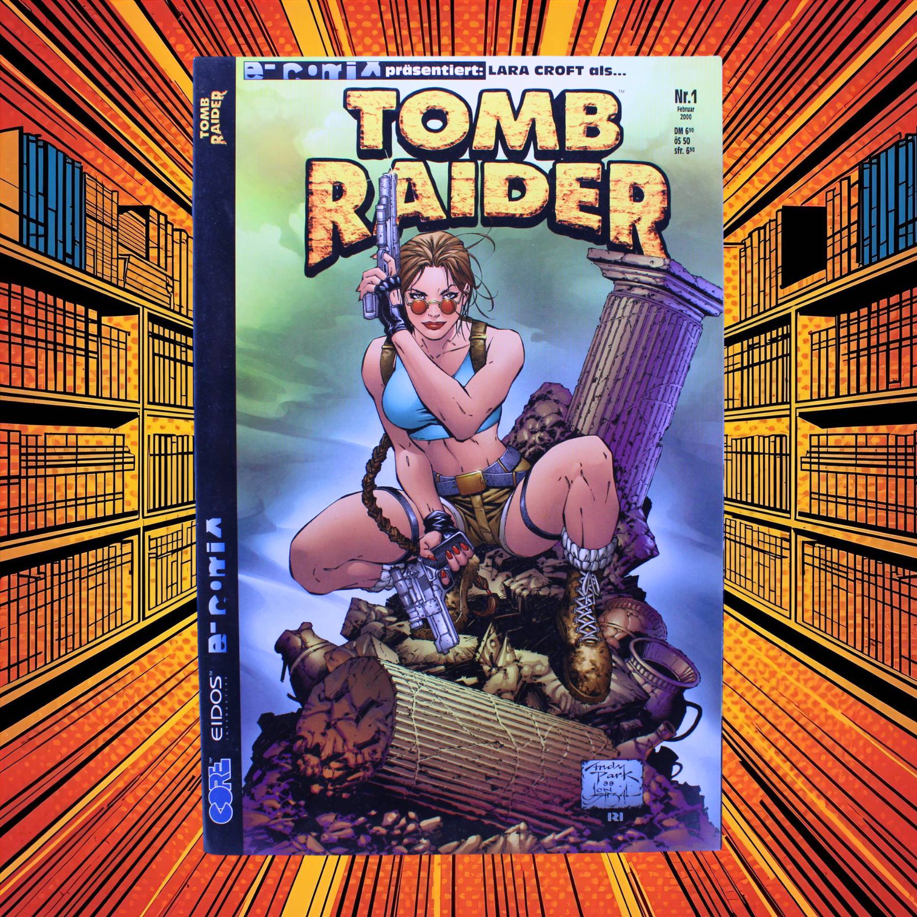 Mit „E-Comix präsentiert: Lara Croft als … Tomb Raider – Nr. 1“ aus dem Jahr 2000 erschien beim Ehapa Verlag eine der spannendsten und heute besonders gesuchten deutschen Comic-Adaptionen eines Videospiel-Icons. Dieses 52-seitige Comic Magazin befindet sich in einem sehr schönen Sammlerzustand mit nur wenigen altersüblichen Gebrauchsspuren.