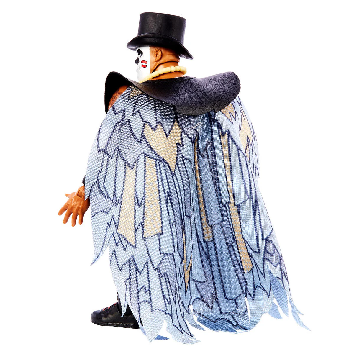Die ca. 15 cm große Actionfigur zeigt Papa Shango in seiner furchteinflößenden Erscheinung, detailreich umgesetzt und ausgestattet mit eindrucksvollen Accessoires, die perfekt zu seinem legendären Ring-Gear passen. Seine ikonische Voodoo-Robe, mit der er stets zum Ring kam, ist ausziehbar. So kannst Du ihn wahlweise im mystischen Entrance-Look oder kampfbereit für intensive Ring-Posen präsentieren.