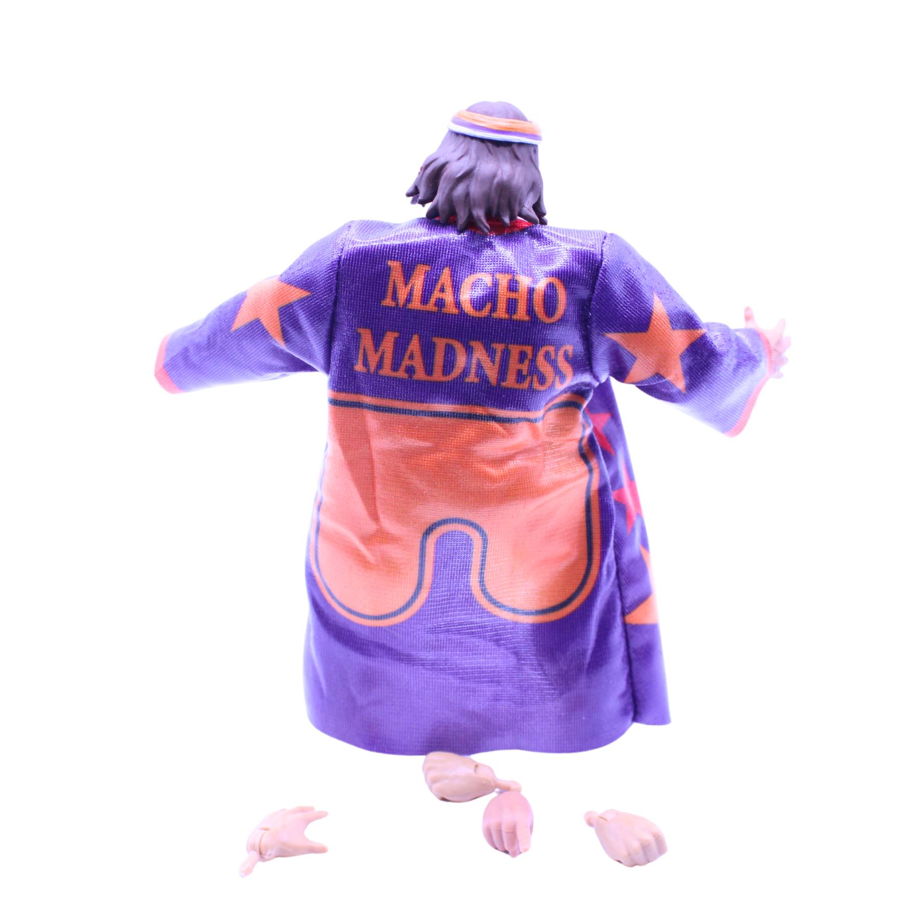 Der ca. 15 cm große Macho Man zeigt Randy Savage in seiner glorreichen Macho-King-Phase, einer der ikonischsten Rollen seiner Karriere. Mit dabei sind Sonnenbrille, Stirnband und austauschbare Hände. Besonders nostalgisch ist das ausziehbare „Macho Madness“-Gewand, das an seine legendären Entrance-Momente erinnert. Damit kannst Du ihn entweder im pompösen Auftritts-Look oder im klassischen Ring-Gear präsentieren – ganz wie früher vor dem Fernseher oder im Kinderzimmer.
