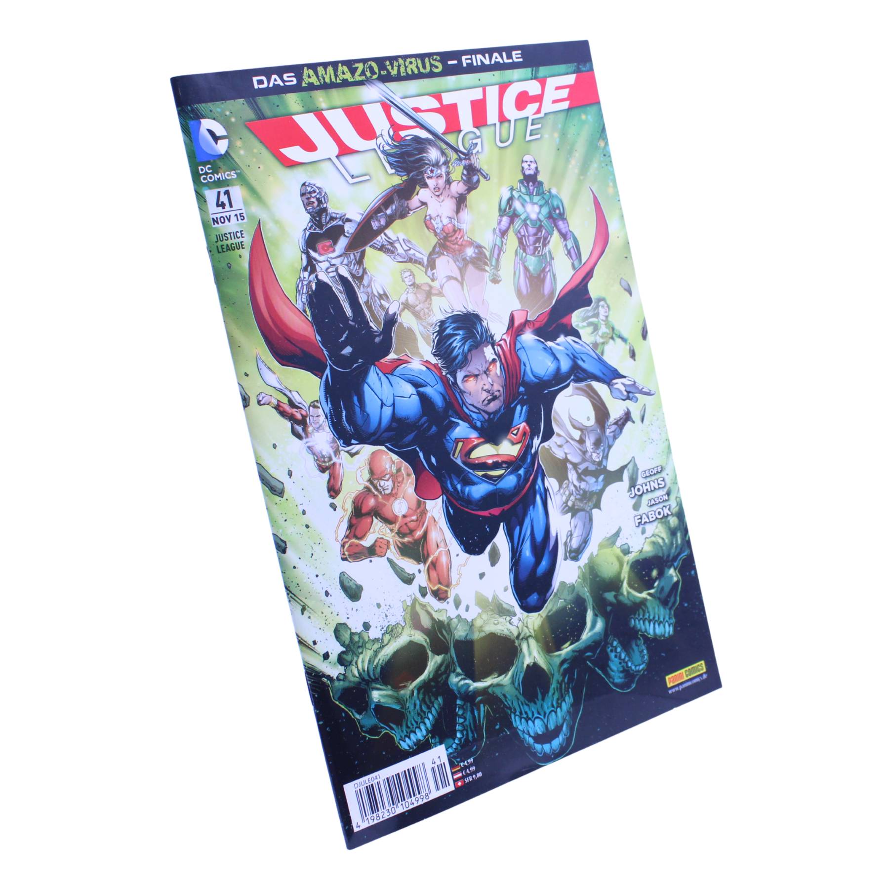 Mit Justice League Nr. 41: Das Amazo-Virus Finale (Panini, 2014) hältst Du das epische Finale des Amazo-Virus-Epos von Geoff Johns in den Händen. Diese 52-seitige Ausgabe befindet sich in einem neuwertigen Sammlerzustand und enthält die deutsche Erstveröffentlichung der US-Ausgaben Justice League 39 und New Suicide Squad 5.