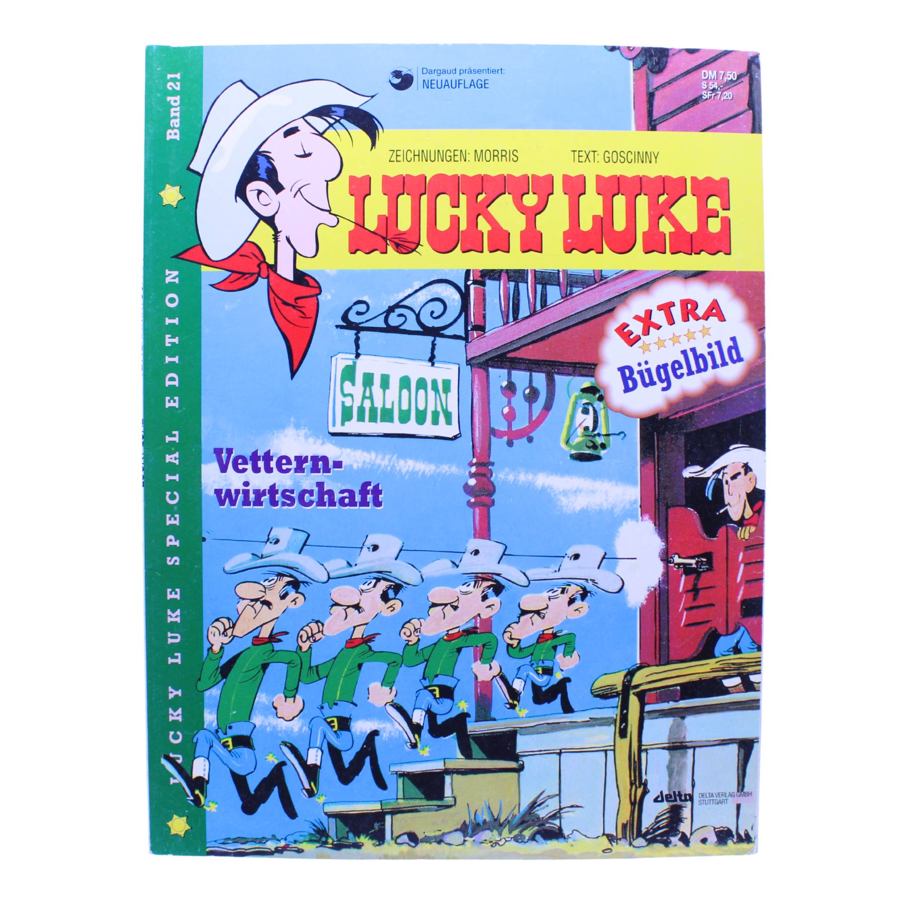 Diese Special-Edition-Neuauflage Nr. 21 des Lucky-Luke-Comics mit dem Titel „Vetternwirtschaft“ erschien 1996 im Delta Verlag im Rahmen der Dargaud-Reihe. Der 48-seitige Hardcover-Band befindet sich in einem schönen und altersgerechten Sammlerzustand.