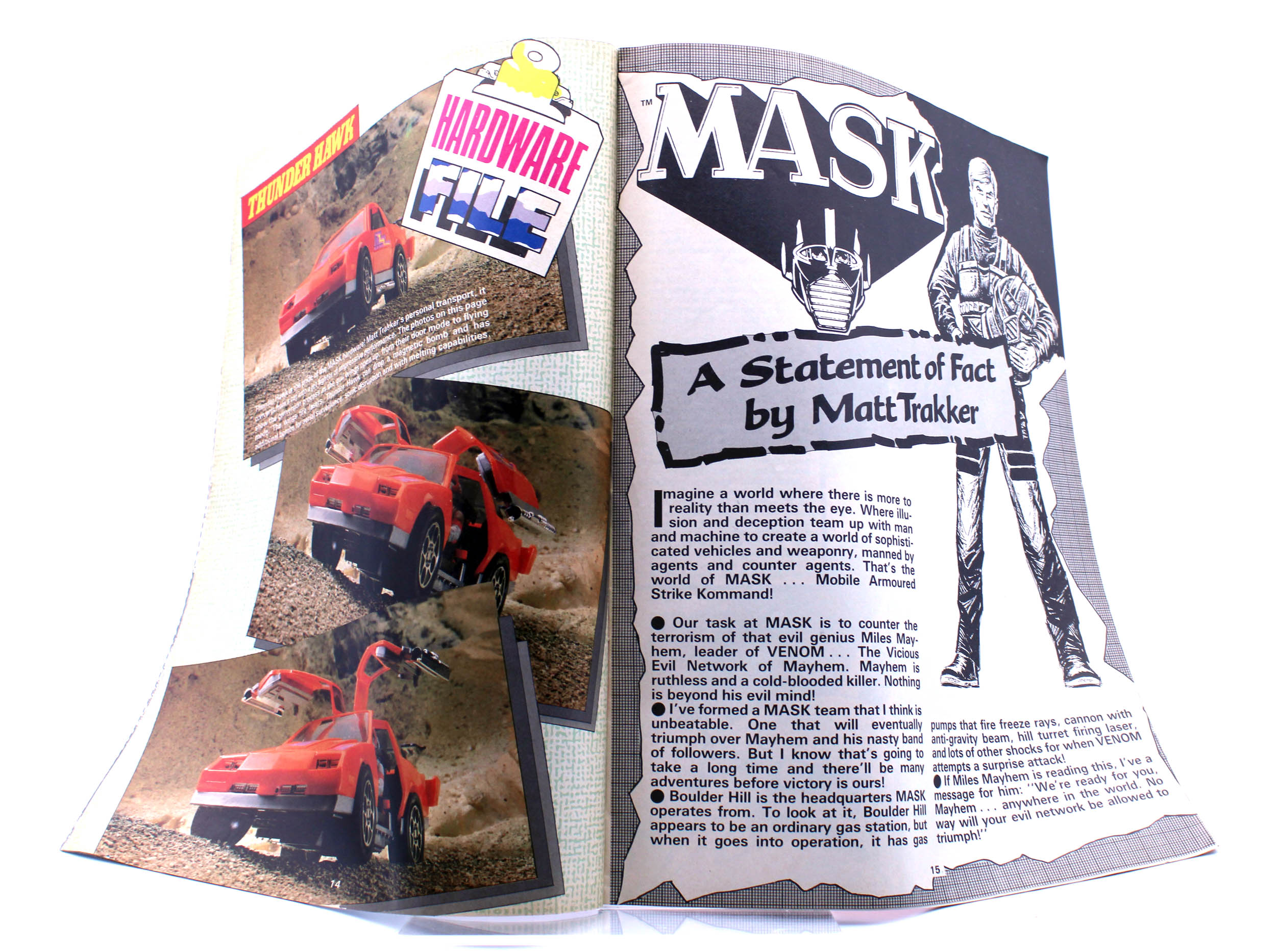 Dieses Comic-Magazin erschien in den 1980er Jahren als offizieller Merchandise-Artikel für die gleichnamige Toyline M.A.S.K. von Kenner! In dem Vereinigten Königreich wurde die Comic-Reihe Mask von IPC Magazines Ltd. publiziert.
