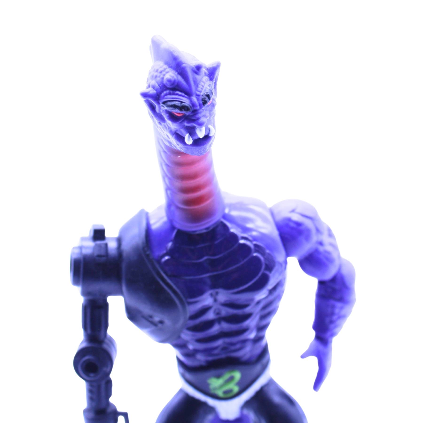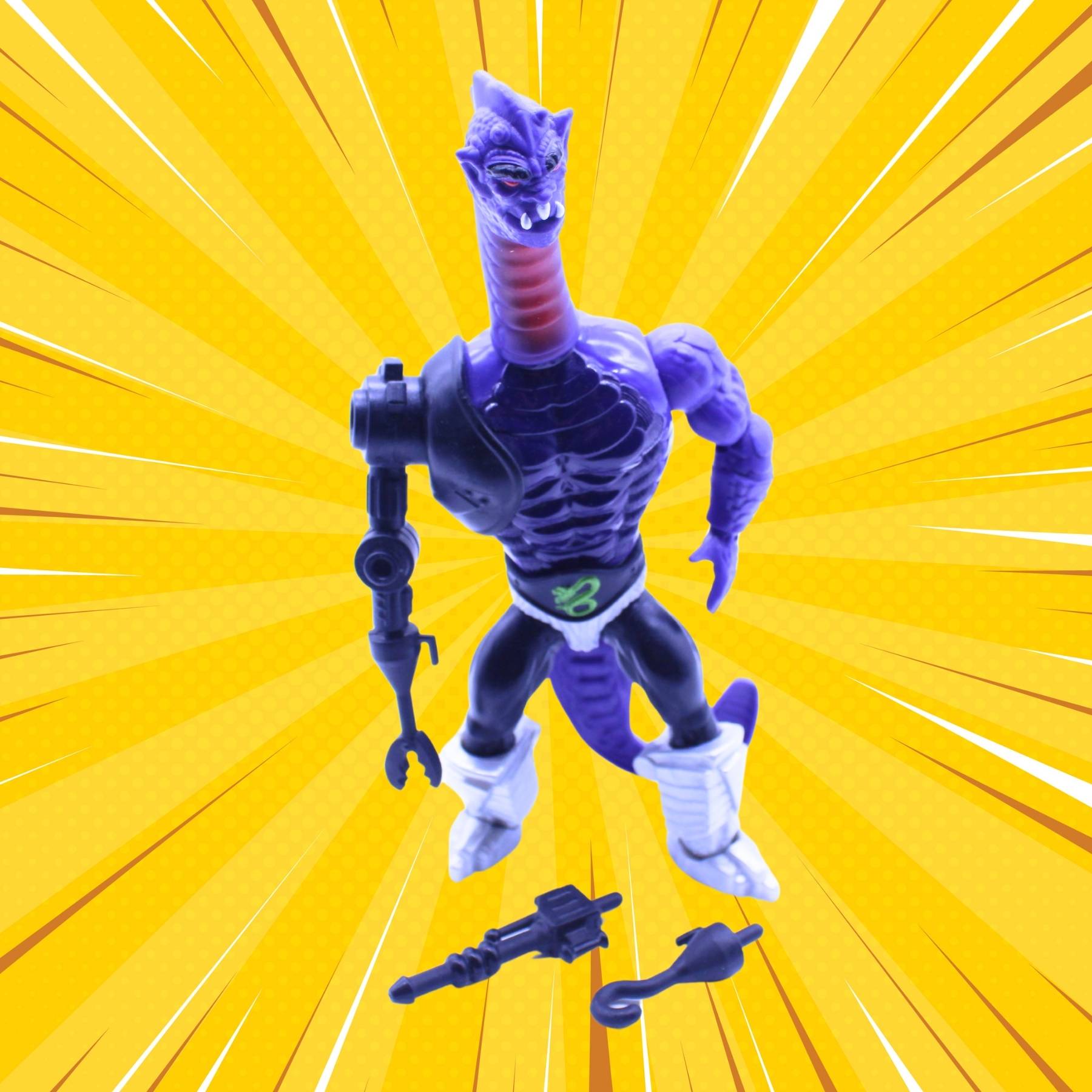 Terroar, der Schlangenkrieger, hat es nun endlich in die aktuelle Toyline geschafft, nachdem seine ursprüngliche Produktion damals aufgrund der Einstellung der Toyline nie realisiert wurde. Umso größer ist die Freude, diesen einzigartigen Krieger nun in den Händen zu halten. Die Figur ist eine meisterhafte Mischung aus klassischen MOTU-Elementen, da Terroar geschickt aus den Teilen der bekannten Charaktere Trap Jaw (mechanischer Arm), Whiplash (Kopf), Rattlor (Oberkörper) und Mosquitor (Beine) zusammengesetzt wurde. Diese gelungene Kombination macht Terroar zu einem unverwechselbaren, bedrohlichen Krieger mit einem markanten Look.