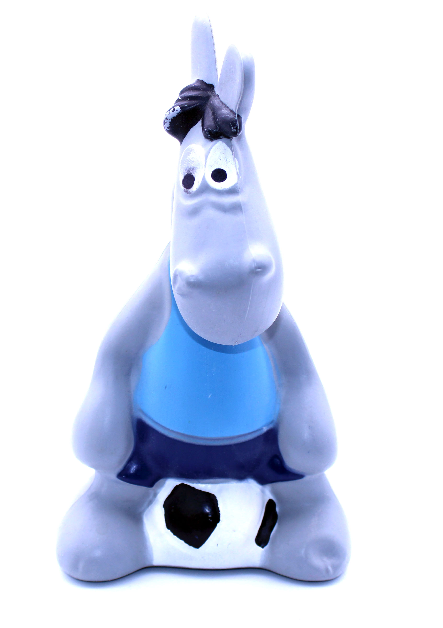 Äffle & Pferdle sind im ganzen Ländle bei Jung und Alt beliebt. Dieser Seifenspender-Behälter zeigt Pferdle auf einem Fußball sitzend. Der Kopf von Pferdle ist abschraubbar, so dass stetig Badeschaum-Flüssigkeit nachgefüllt werden kann.
