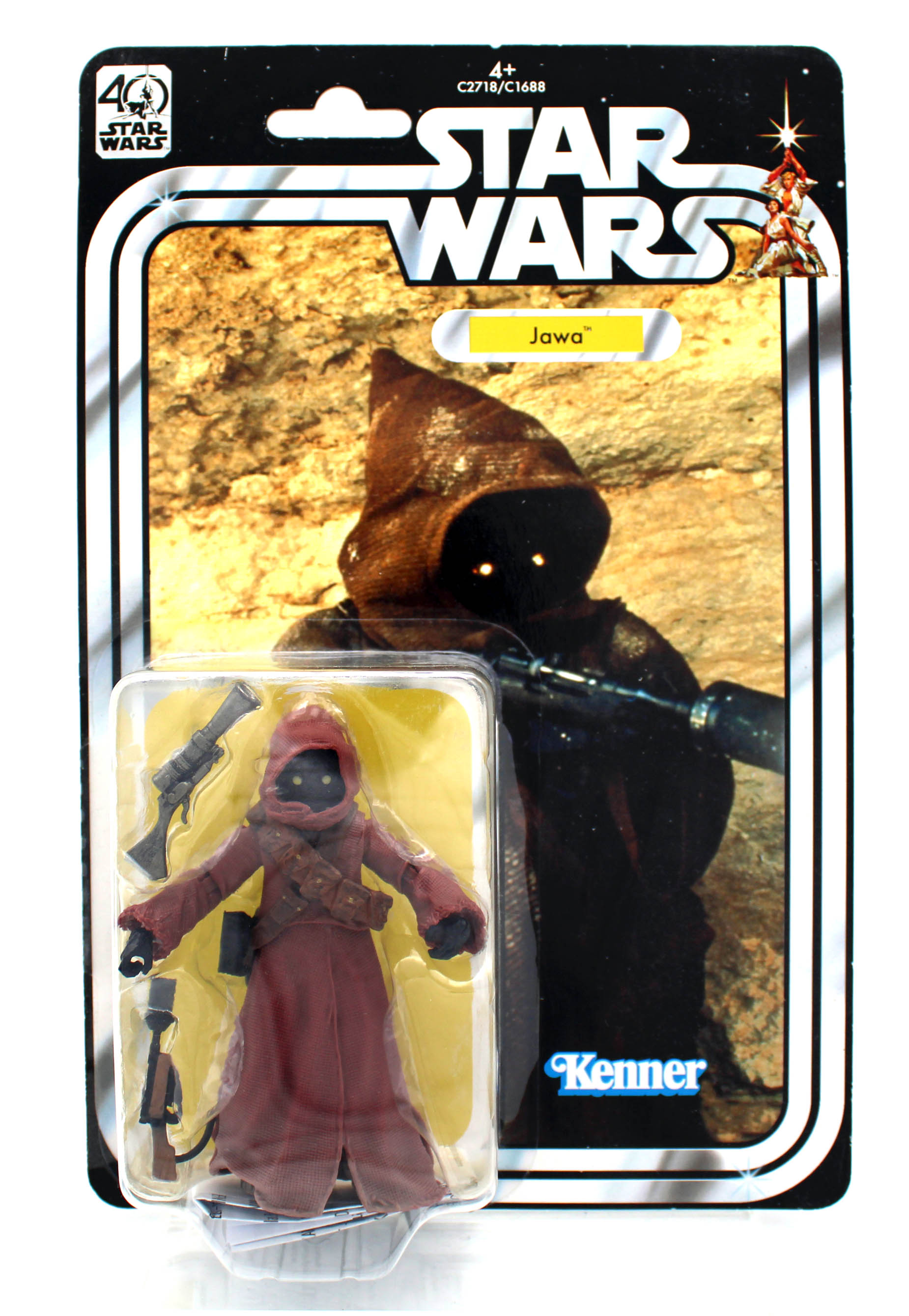 Diese überaus gelungene Star Wars Actionfiguren-Reihe von Hasbro ist eine Hybrid-Toyline zwischen den Labels Black Series und Vintage Collection. Bei dieser neuen Reihe legt Hasbro viel Wert auf Vintage-Feeling und begeistert mit authentisch wirkenden Actionfiguren. Bei den Jawas handelt es sich um Schmuggler, die auf dem Wüstenplanten Tatooine, der zugleich auch der Heimatplanet von Anakin und Luke Skywalker ist, so ziemlich alles Verwertbares aufsammeln und gegen Credits veräußern. Mit ihren Kapuzen und ihrer relativ geringen Körpergröße wirken diese im Star Wars Universum geradezu niedlich, allerdings befinden sich unter ihren Capes feuerbereite Blaster, die jederzeit auch zum Einsatz kommen können.