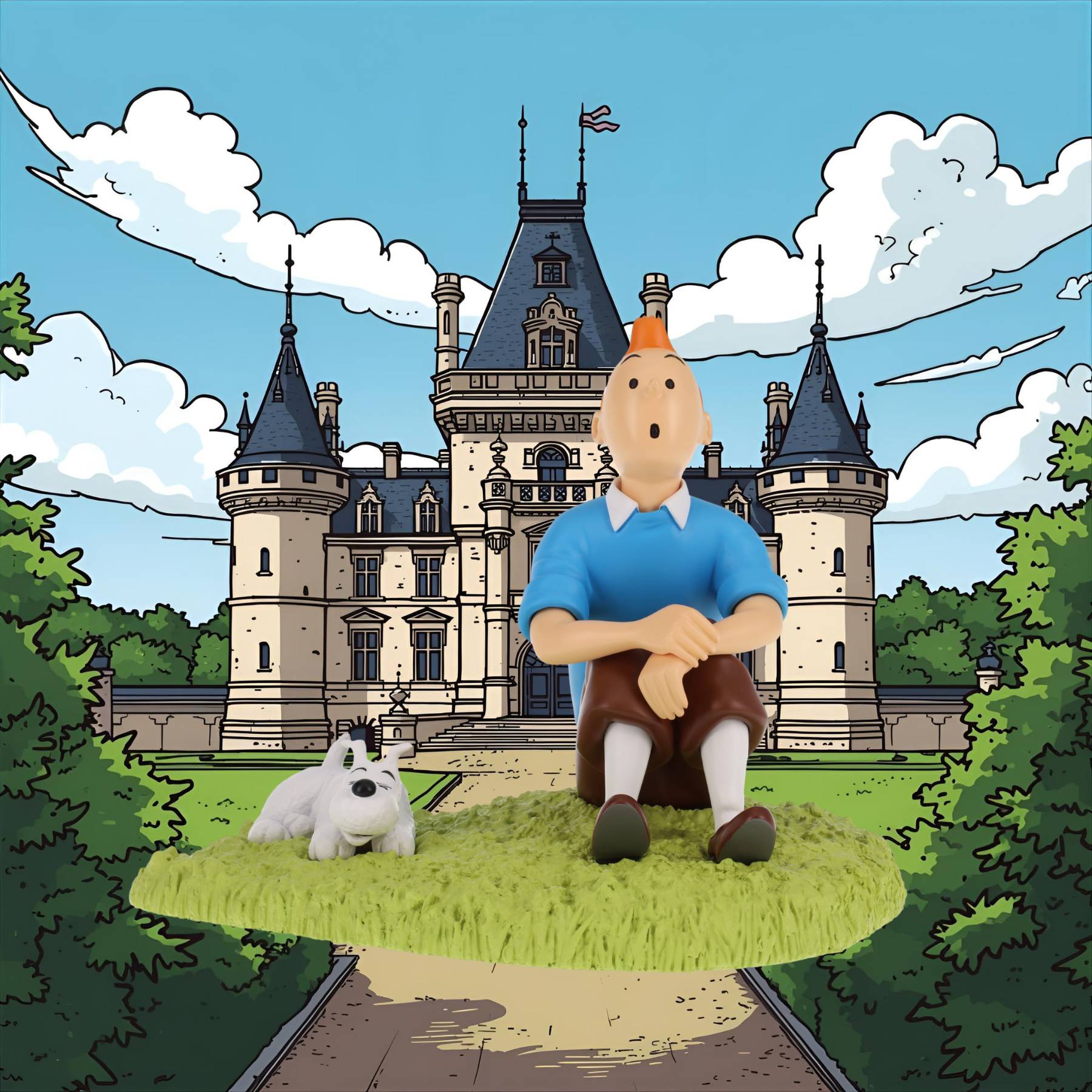 Tim & Struppi Collectible Skulptur 2023 – Tim mit Struppi im Gras (Tintinimaginatio)