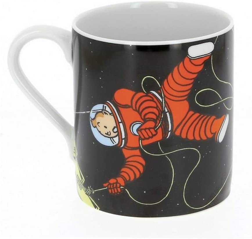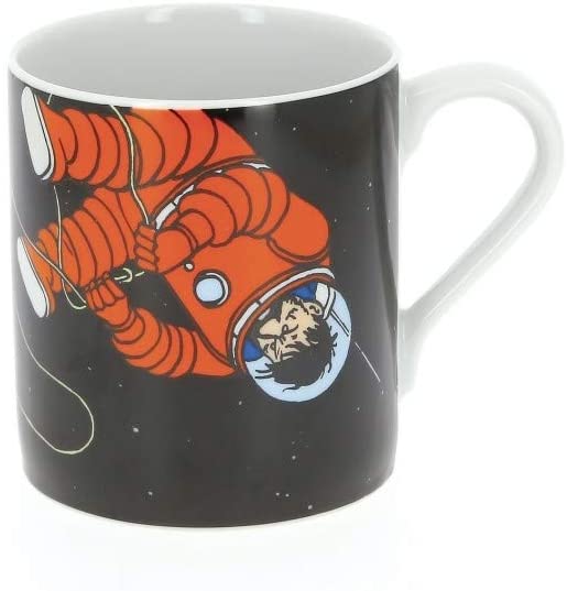 Diese formschöne Porzellan Tasse lässt das Herz des Tim & Struppi Fans höher schlagen! Sie ist Teil der legendären Geschichte zu Tim & Struppi´s Mondreise und zeigt sowohl Tim & Struppi, als auch Kapitän Haddock als Astronauten im Weltraum. Kapitän Haddock betrinkt sich mit seinem mitgeschmuggelten Whisky an Bord der Rakete und verliert den Verstand. Er beschließt kurzerhand die Rakete zu verlassen, um nach Schloss Mühlenhof zurückzukehren und in die endlosen Weiten des Alls zu entgleiten. Glücklicherweise waren Tim & Struppi sogleich zur Stelle und konnten den beschwipsten Kapitän Haddock einfangen und wieder an Bord der Rakete bringen.