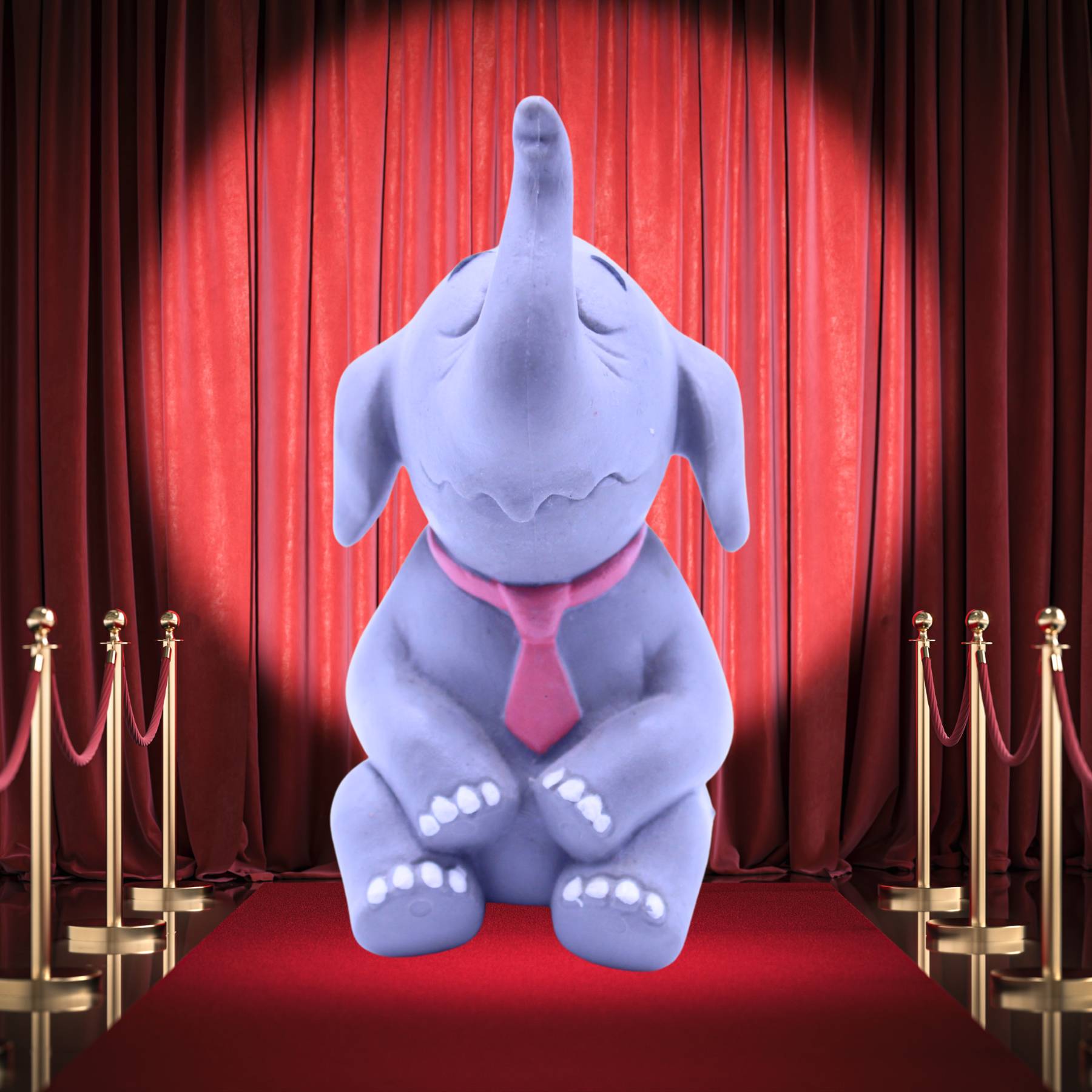 Rosafarbene Krawatte, erhobener Rüssel |